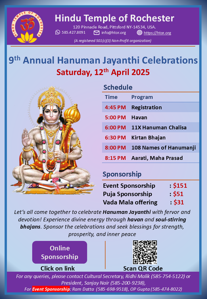 Full Sponsorship for Hanuman Jayanti Celebrations & Havan. Includes Vada mala Sponsorphip
